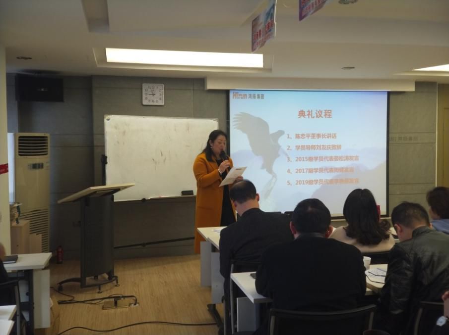 圖注:開學(xué)典禮——2019級“鴻揚(yáng)之鷹”學(xué)員代表懷化鴻揚(yáng)總經(jīng)理李艷麗發(fā)言