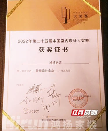 鴻揚(yáng)家裝第11次獲評“中國最佳設(shè)計(jì)企業(yè)”